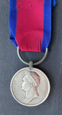 Waterloo Medal, 1st Dragoon Guards, a particularly good Union Brigade Charge casualty, four times wounded. The nature of his wounds indicate present throughout the charge until the final engagement with French Lancers suffering two head wounds and two severe lance wounds