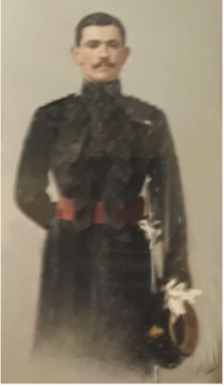 Born in 1877, he was commissioned from the 3rd Battalion the Prince of Wales’s Volunteers (South Lancashire Regiment) into the Grenadiers in May 1900, serving in South Africa on operations in the Orange River Colony. Cape Colony, and Transvaal, including the actions at Wittebergen.