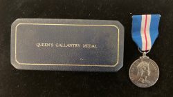 Queen’s Gallantry Medal, Fireman , Hertfordshire Fire Brigade awarded for the rescue of a trapped fellow fireman from a blazing building under threat of collapse by digging out with his bare hands